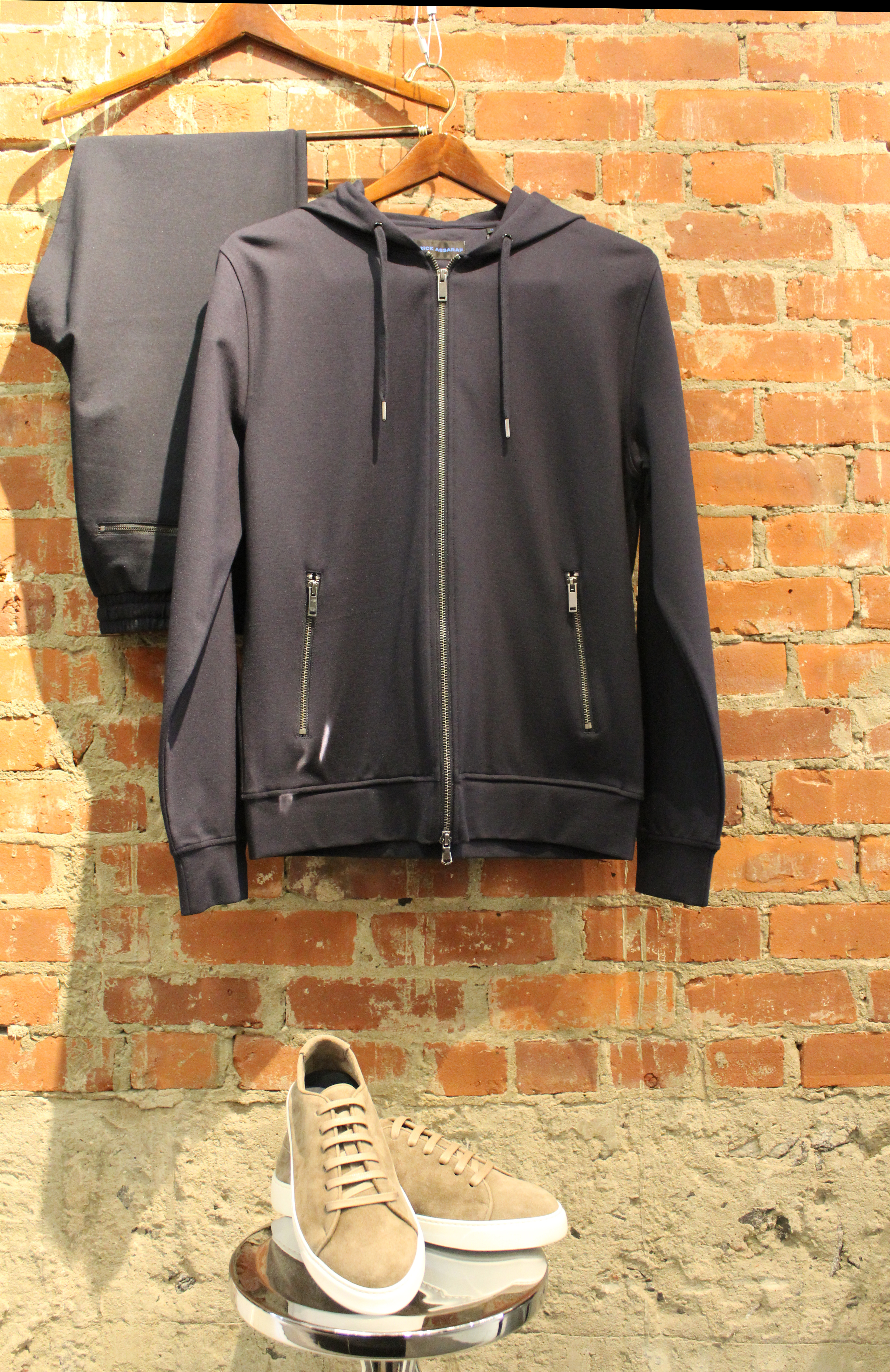 Parfois, un ensemble de jogging luxueux est la solution à tous vos problèmes. Si l’itinéraire est assez court et que vous n’avez pas besoin trimbaler trop de bagages, l’ensemble de jogging Patrick Assaraf est le choix idéal. Nous recommandons de le porter avec un de leur t-shirts en coton pima extensible pour un confort accru et un style impeccable. La collection Patrick Assaraf est légère, garde sa forme et d’une souplesse incroyable. Ajoutez la touche finale avec une paire d’espadrilles en suède Andrea Zori et vous obtiendrai fort probablement des compliments de la part de l’équipage.